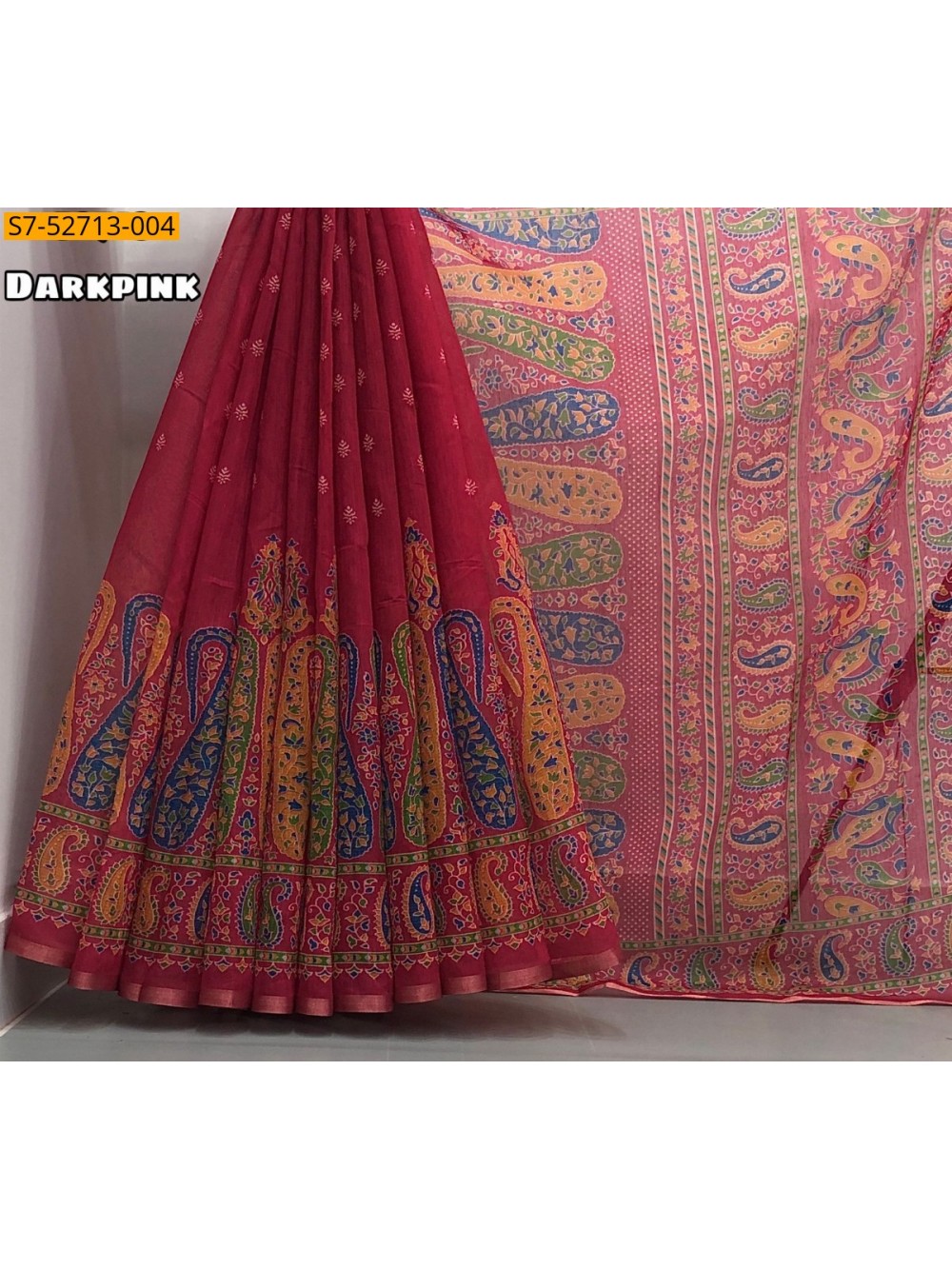 Dark pink Fancy chenderi Printed Saree
