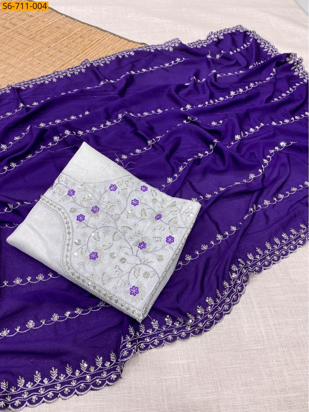 - Embroidery Sequins design all over the saree