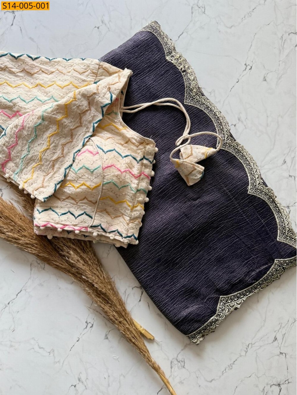 • Blouse Pure Khadi Cotton With Thread work fully stiched upto 42