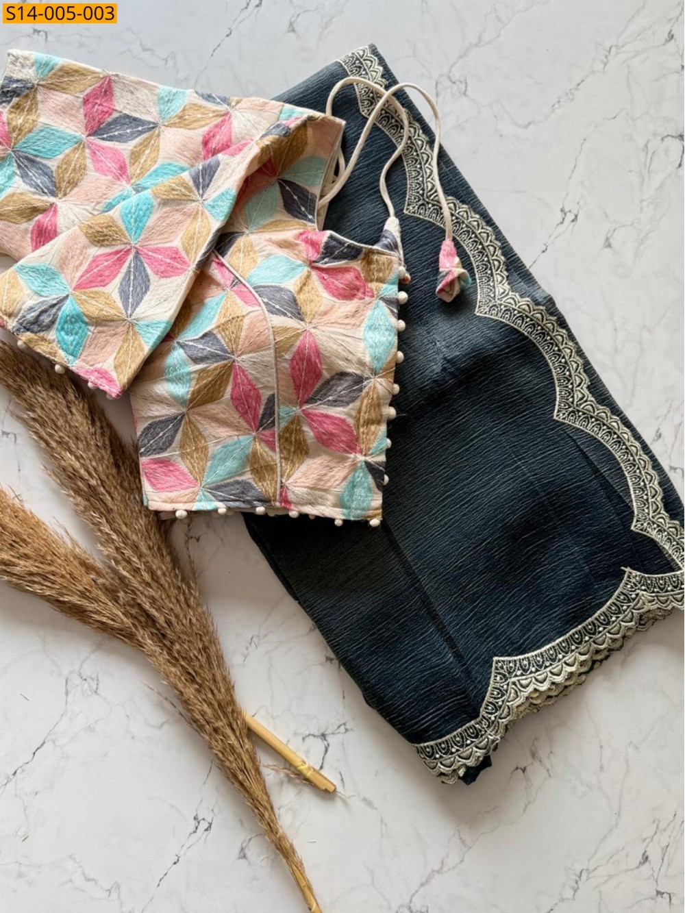- Blouse Pure Khadi Cotton With Thread work fully stiched upto 42