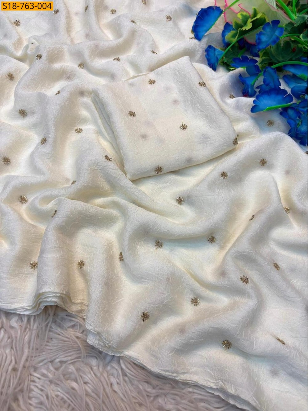 Half White Fancy Crush Saree