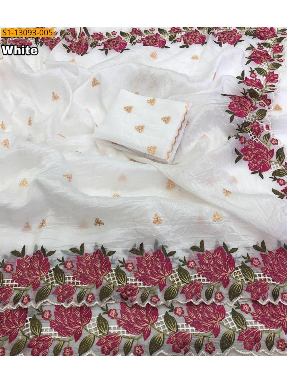 - Floral embroidery multi thread design all over the body