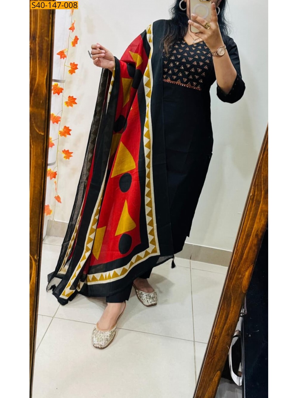 Black Fancy Dhabu Cotton kurti pant dupatta Set