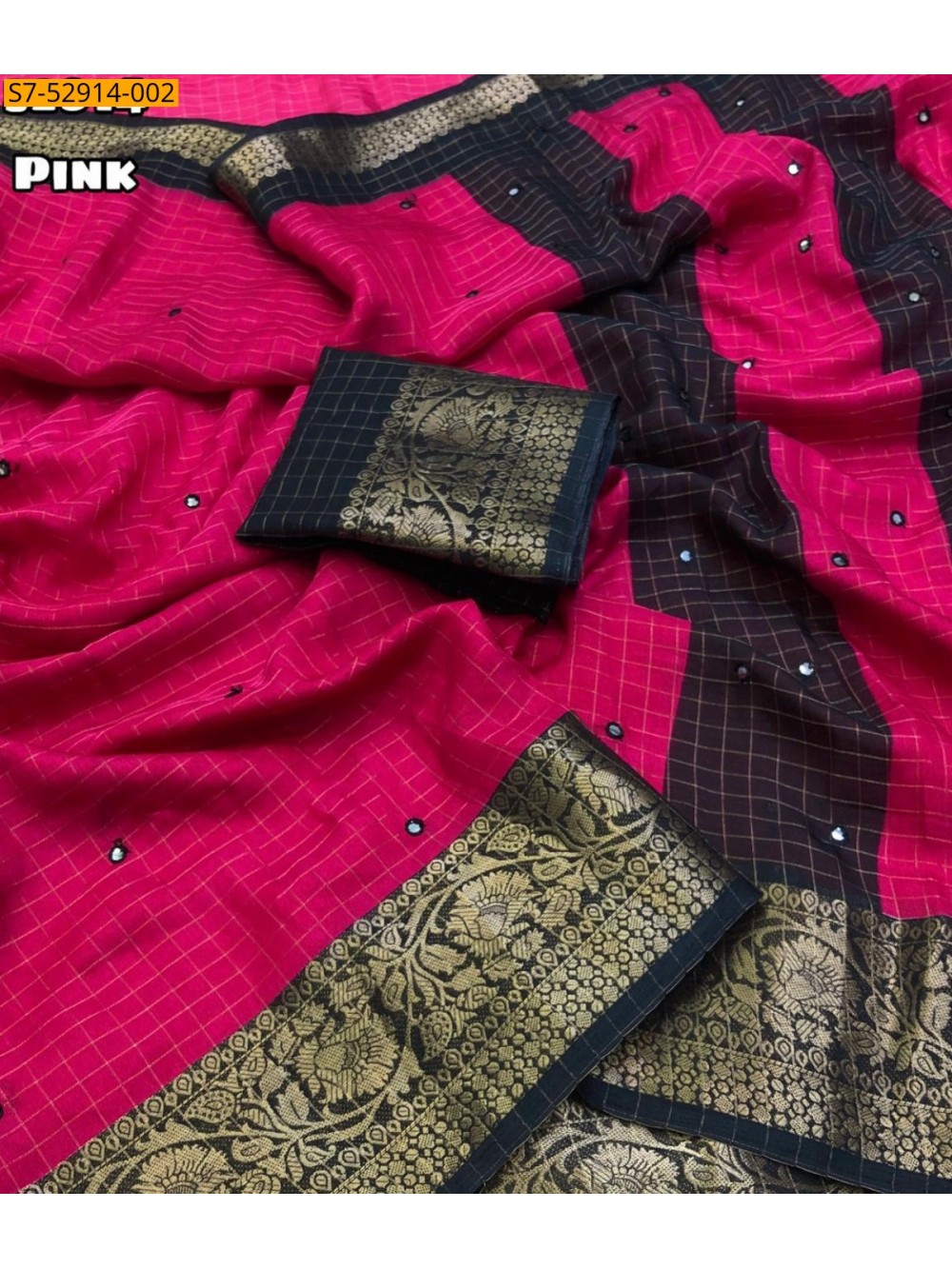 - Fancy Dola check Printed Saree