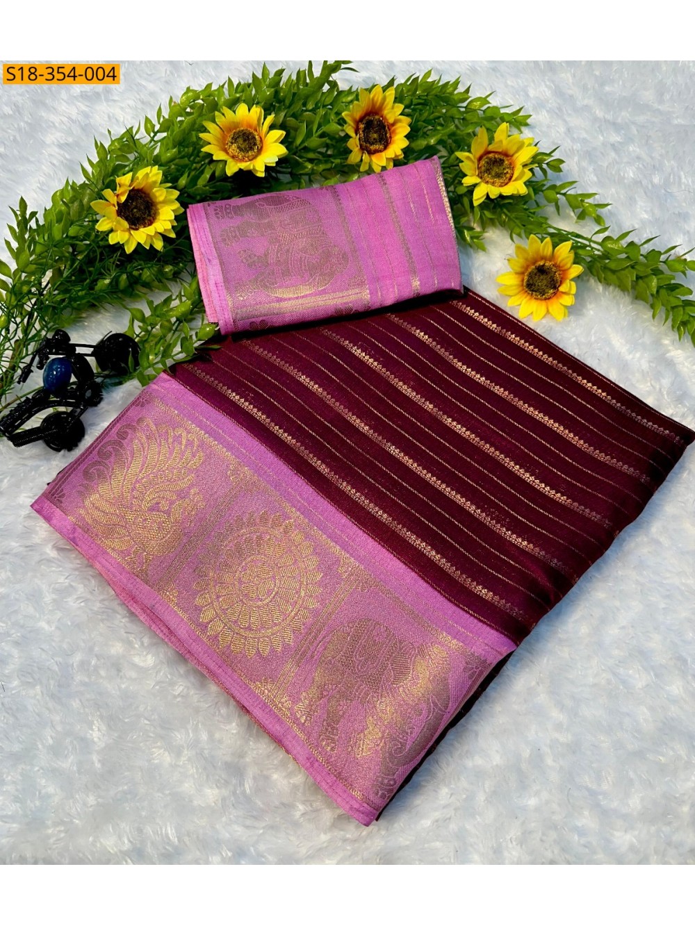 - Golden zari jacquard border