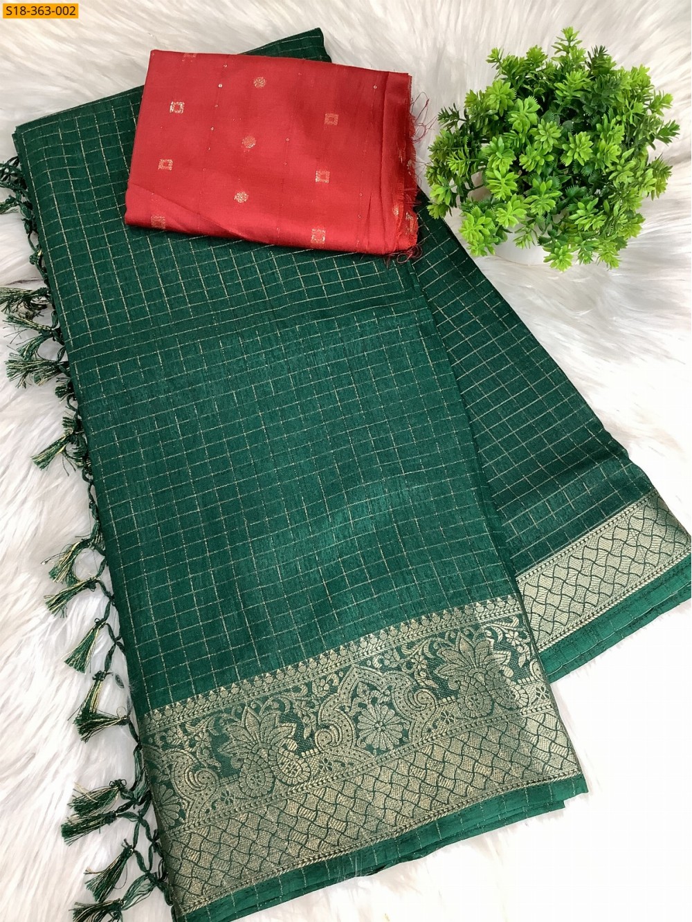 - Checked zari weaving design in full body