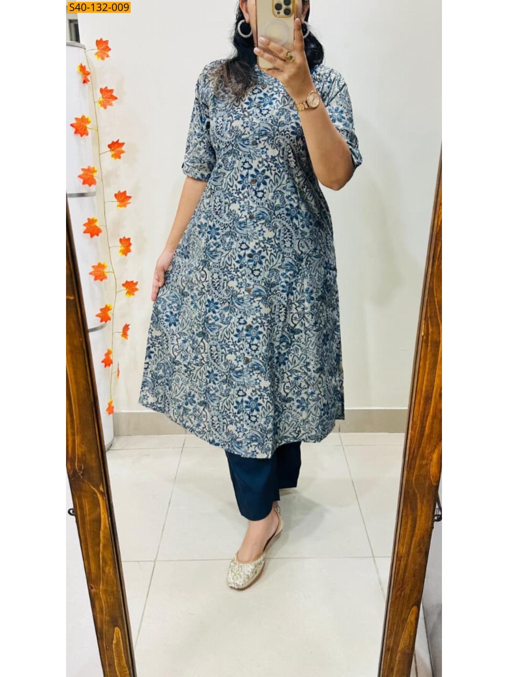 - Aline kurti pattern paired with Ankle length pant
