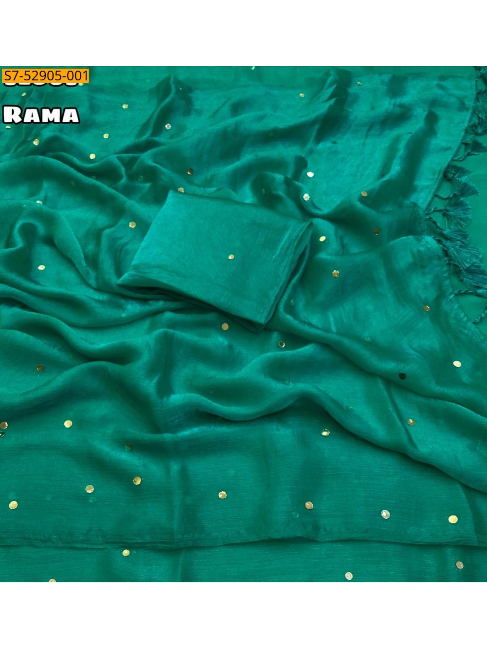 Rama green Fancy Fendy Chiffon Mirror Work Saree
