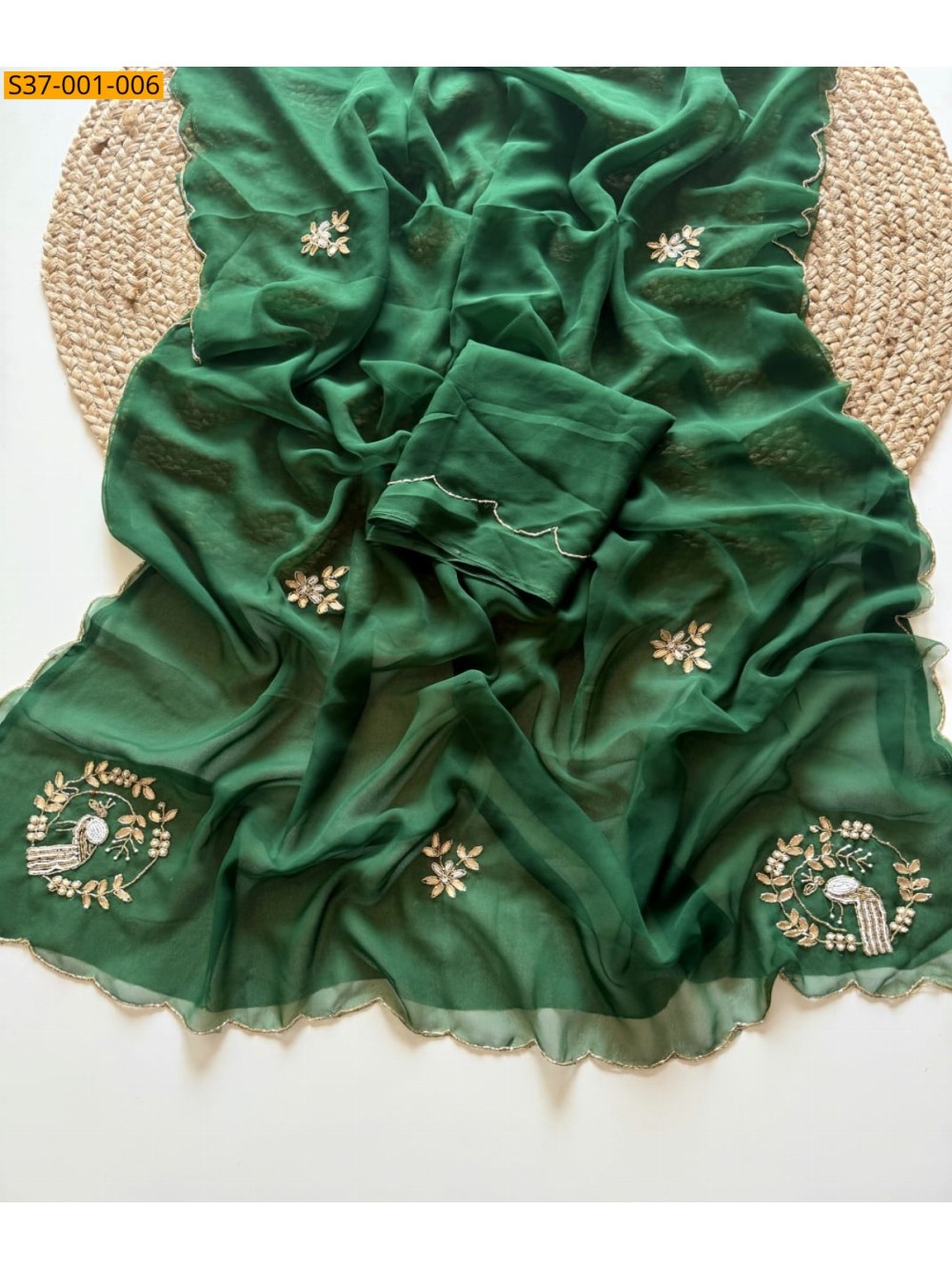 Green Fancy Georgette handwork Sarees