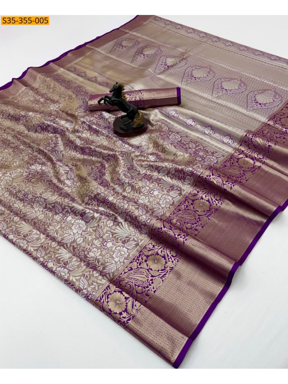 - Heavy Zari Weaving with Floral & Paisley Design across the body