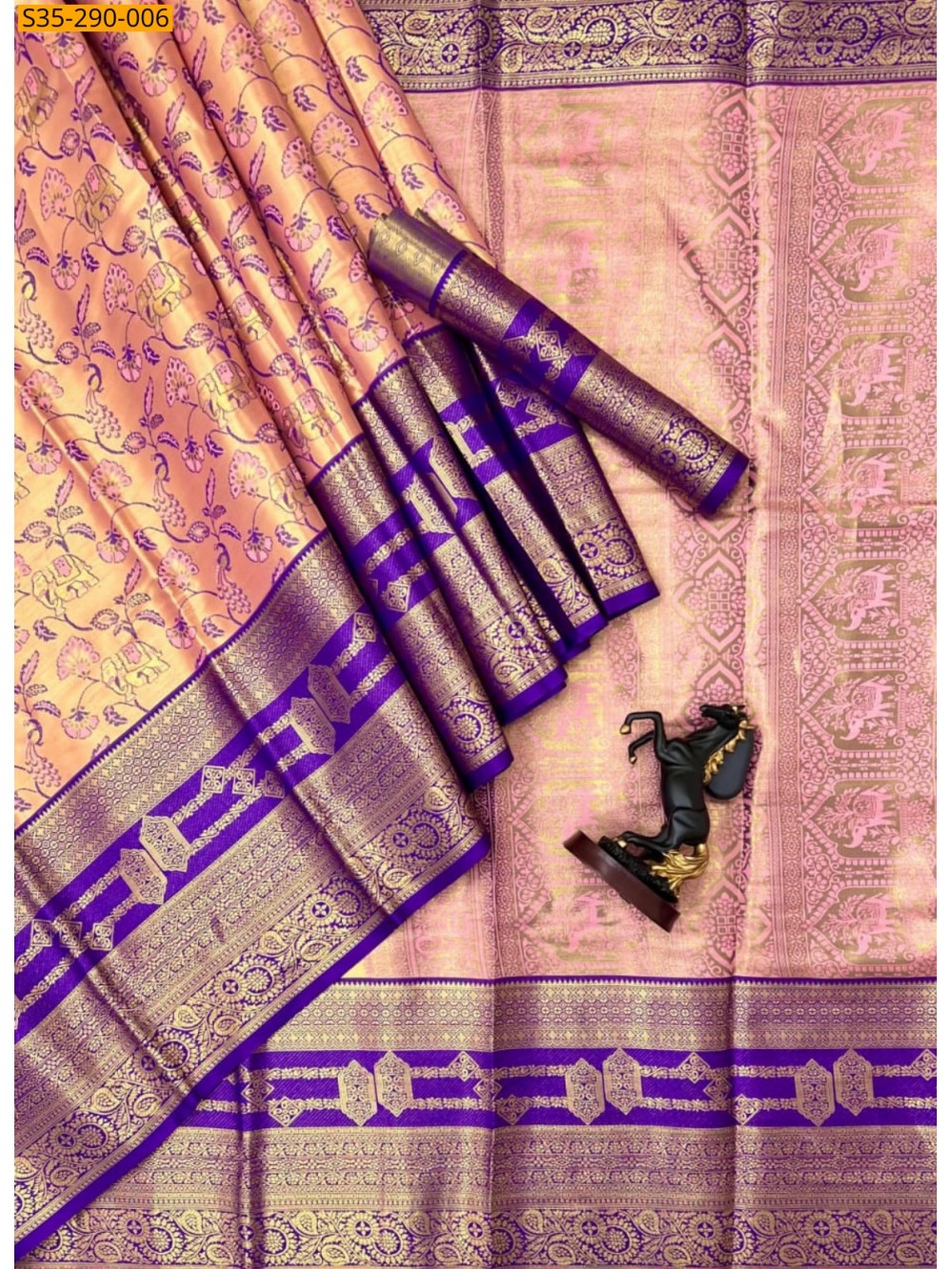 Peach Fancy Kanjivaram Semi silk Pattu sarees