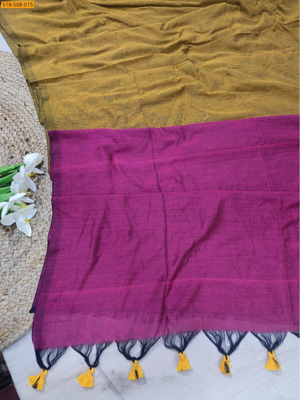 - Contrast pallu With tassels