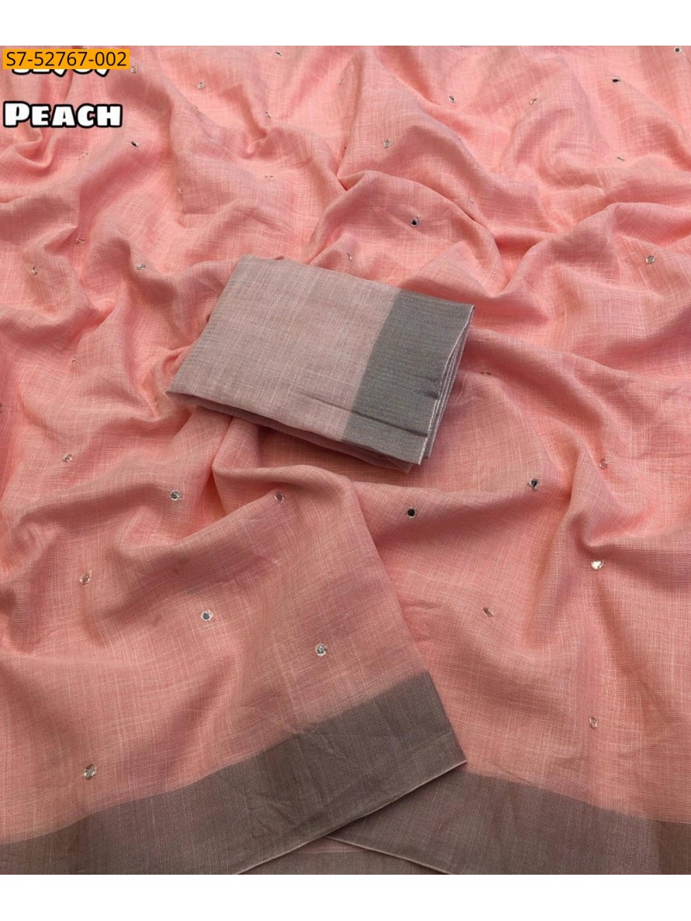 • 90 Count Linen Saree With Embroidery & Foil Mirror Work