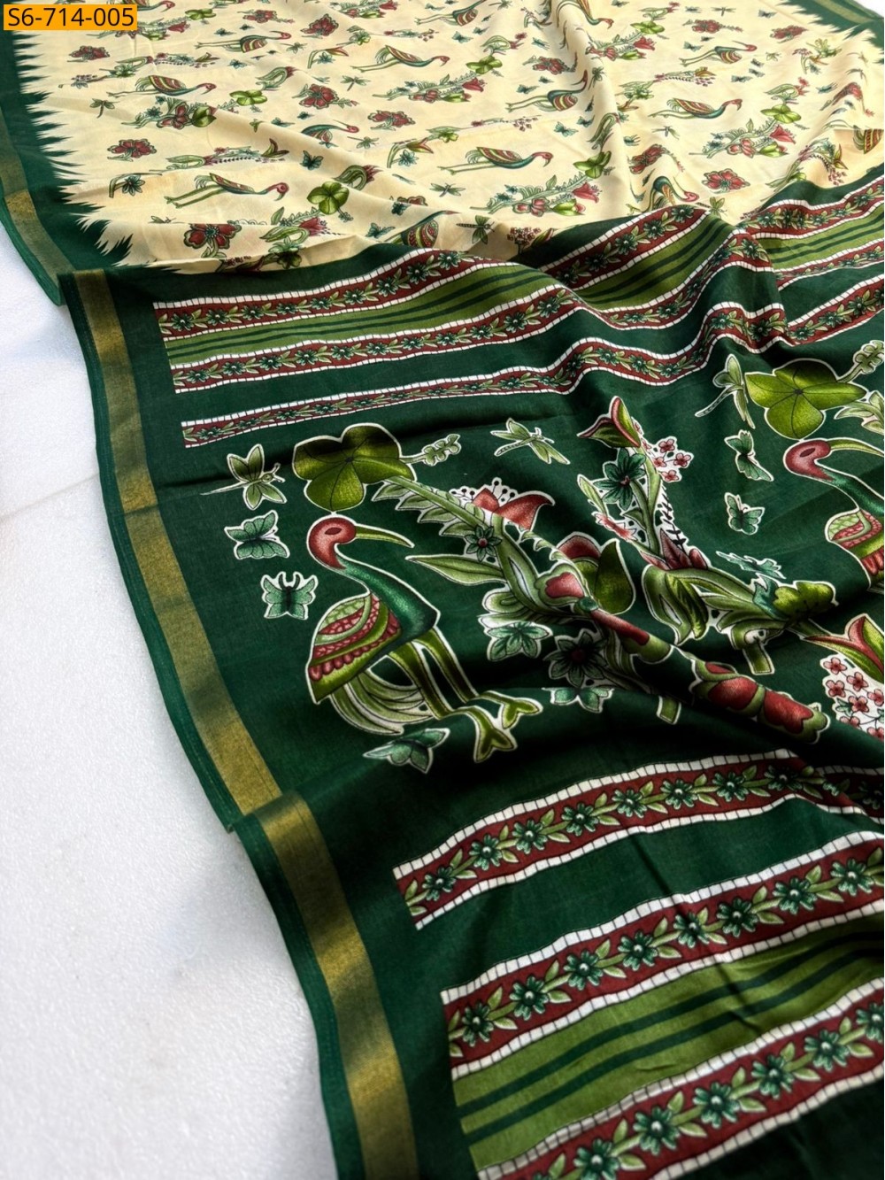 Green Fancy Mul Cotton Saree