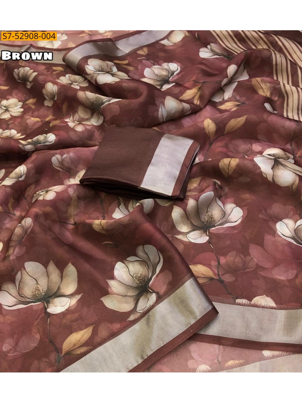 - Fancy Organza Floral Digital Print Saree