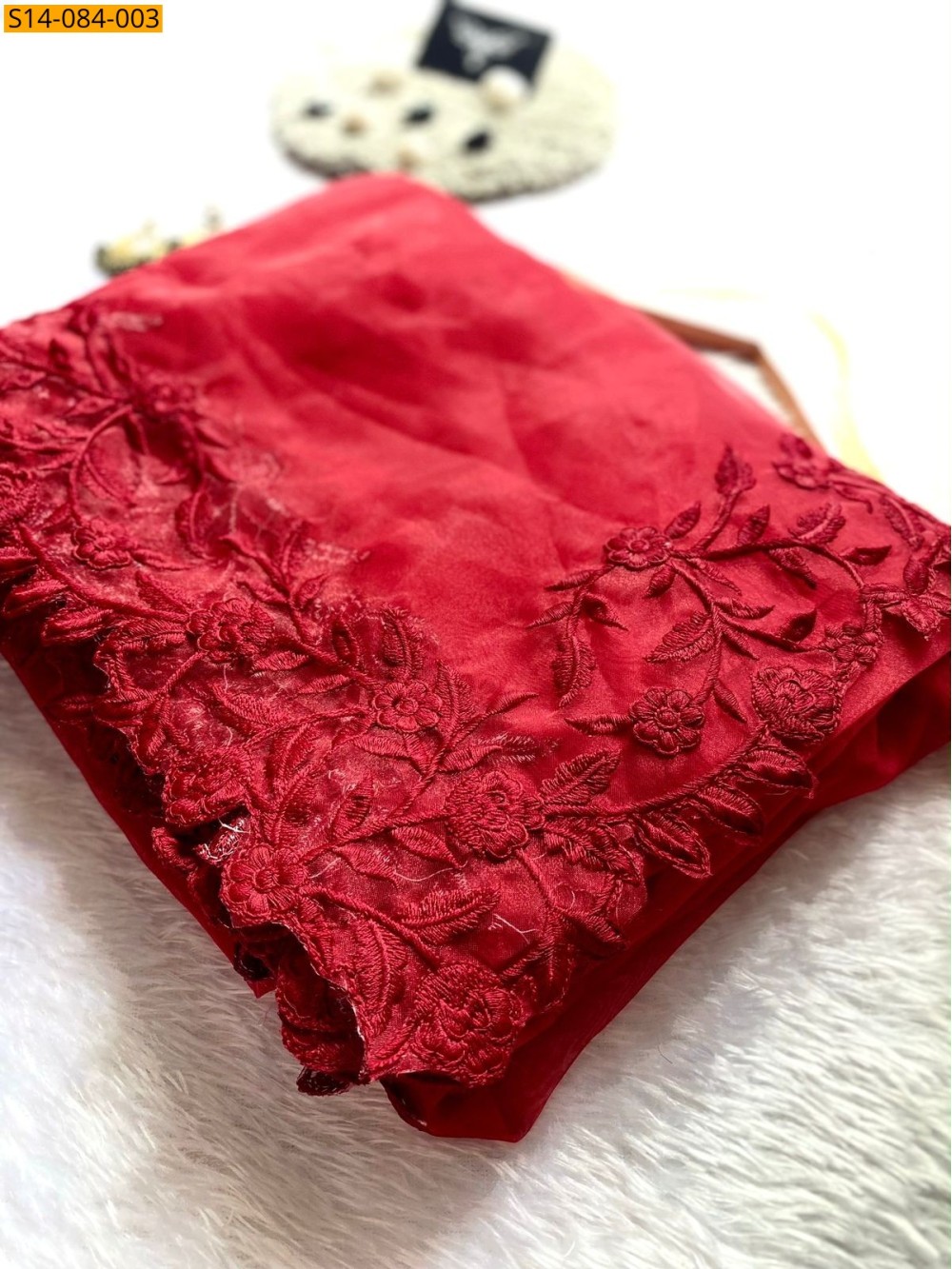 Red Fancy Organza Silk Sarees