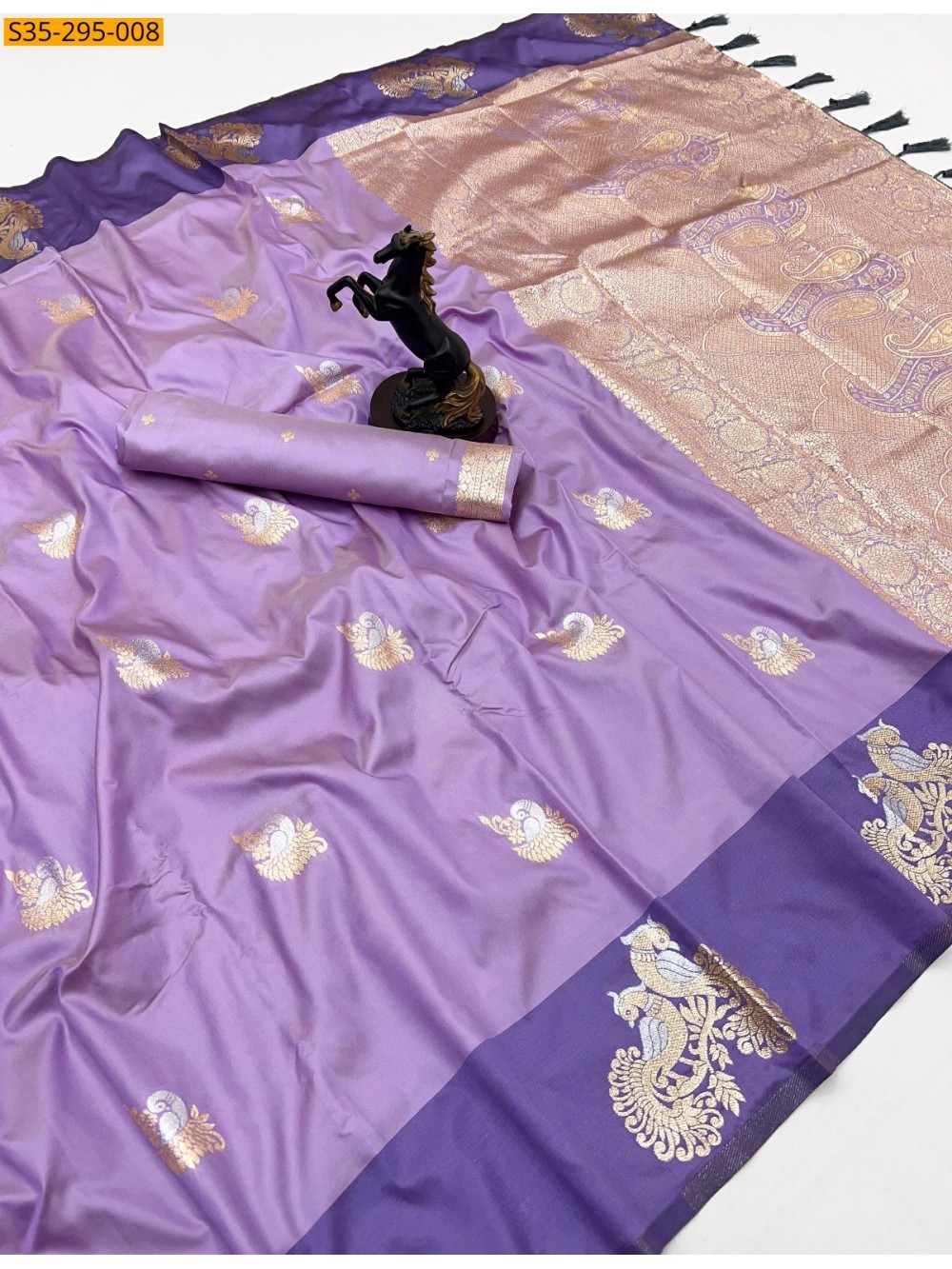- Rich zari weaving and elegant peacock motifs design all over the saree