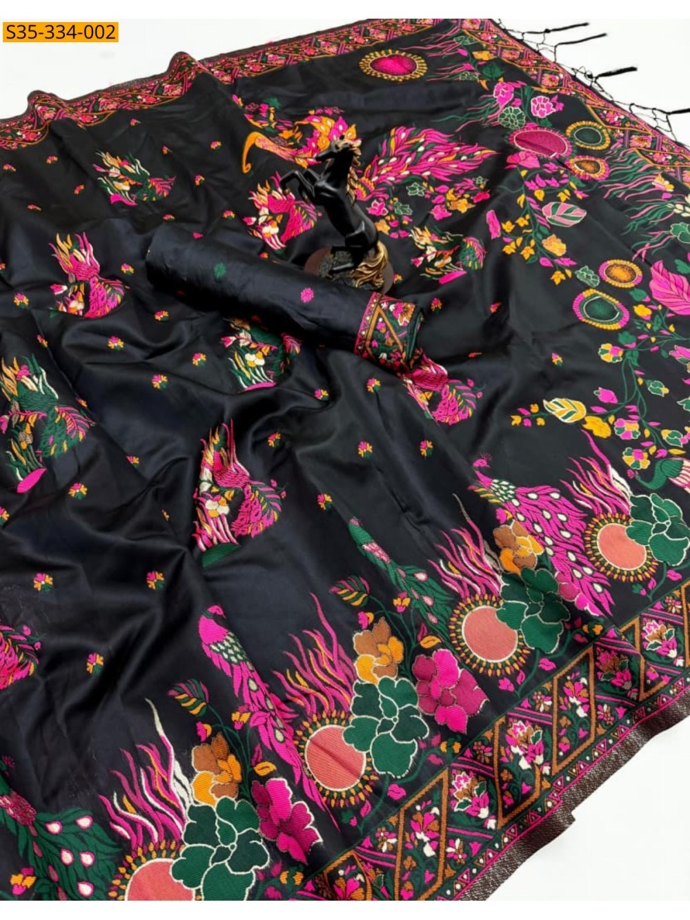 - Rich woven meenakari border
