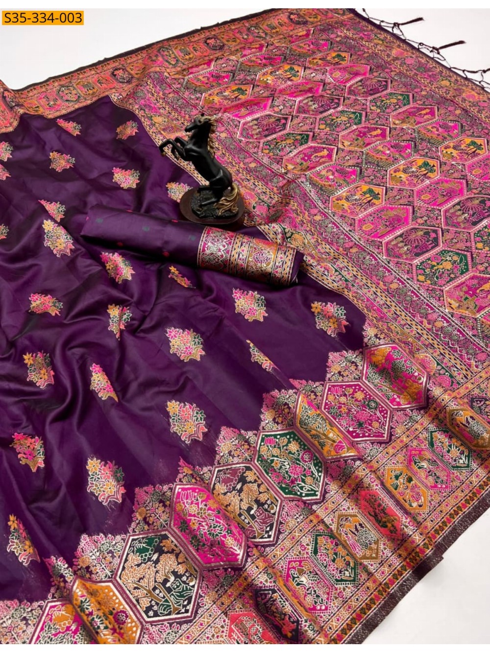 • Rich woven meenakari border