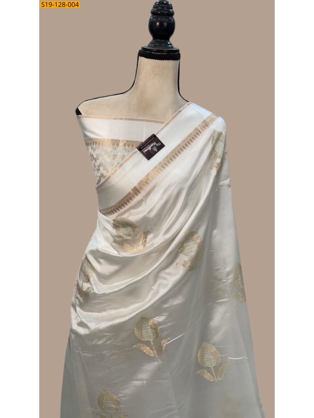 White Fancy Raw Mango Soft silk Banarsi Saree