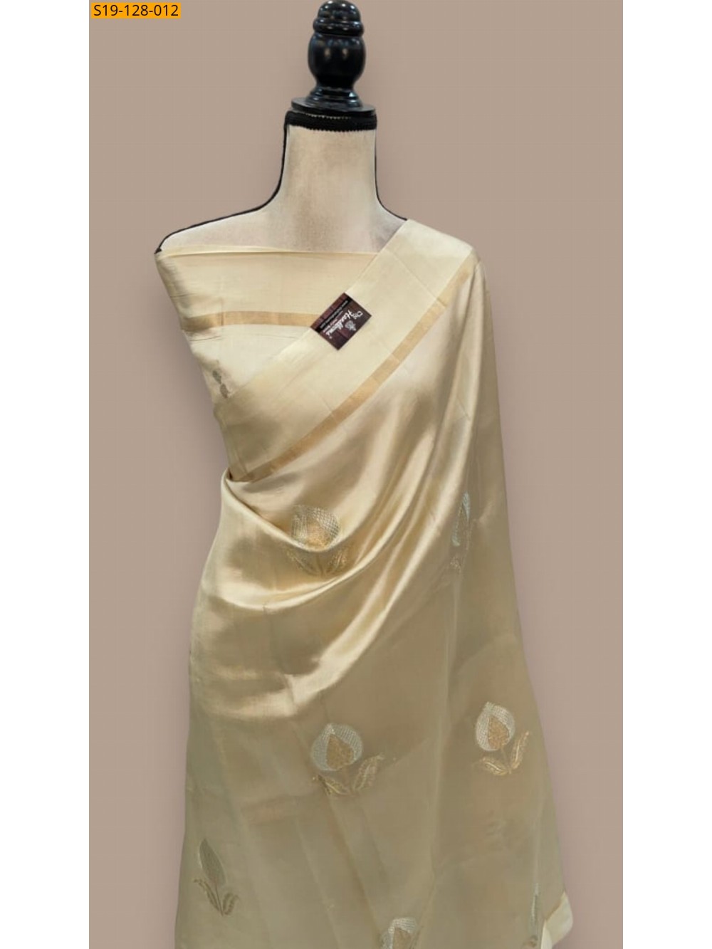 Half white Fancy Raw Mango Soft silk Banarsi Saree