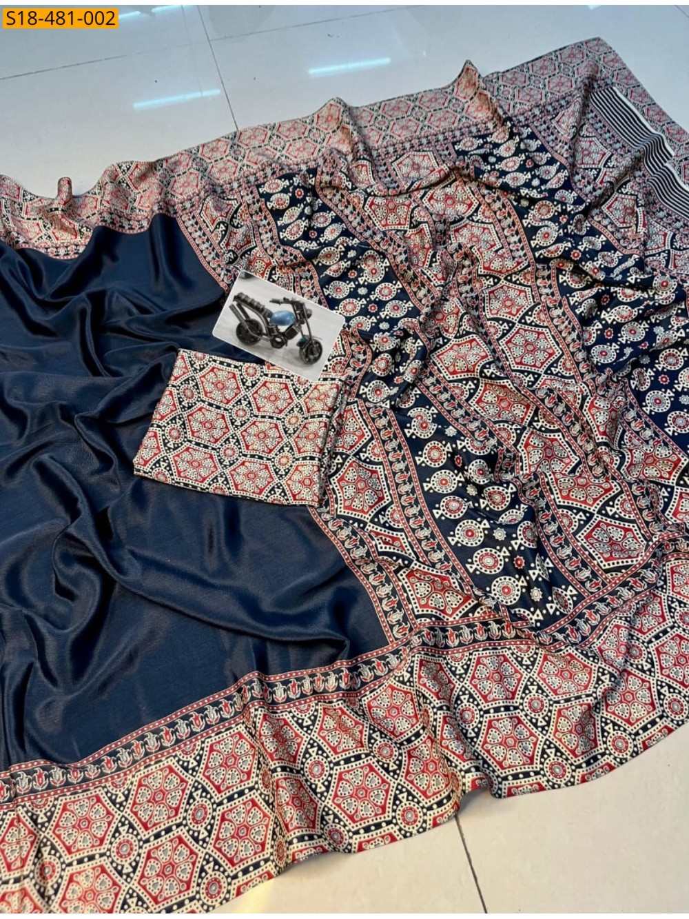 Bagru Style Printed Fancy Linen Cotton Silk Blended Saree