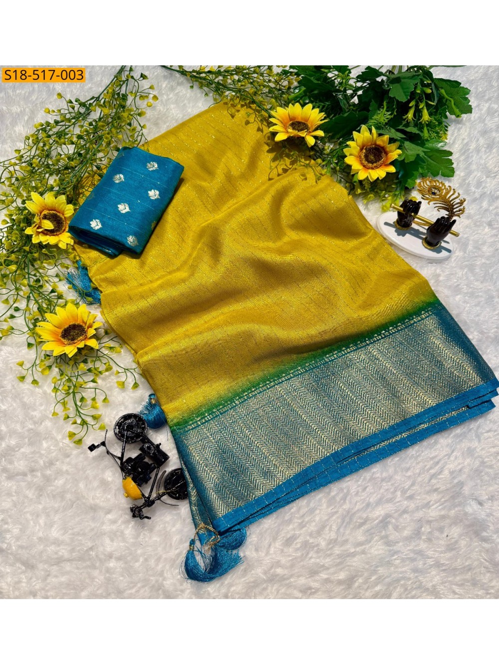 Yellow Fancy Semi Dola sarees