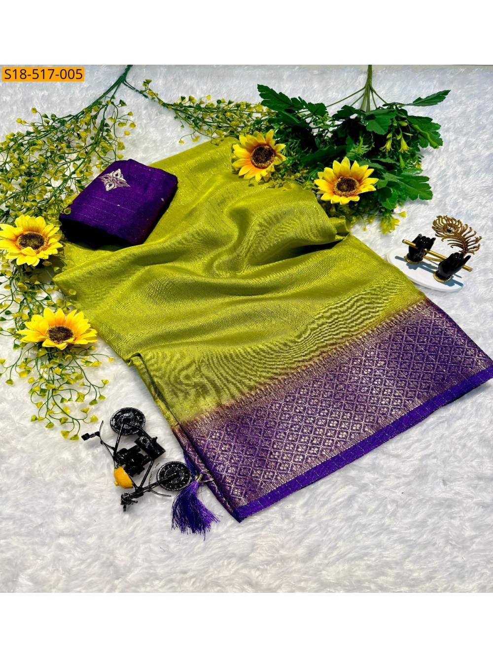 Green Fancy Semi Dola sarees