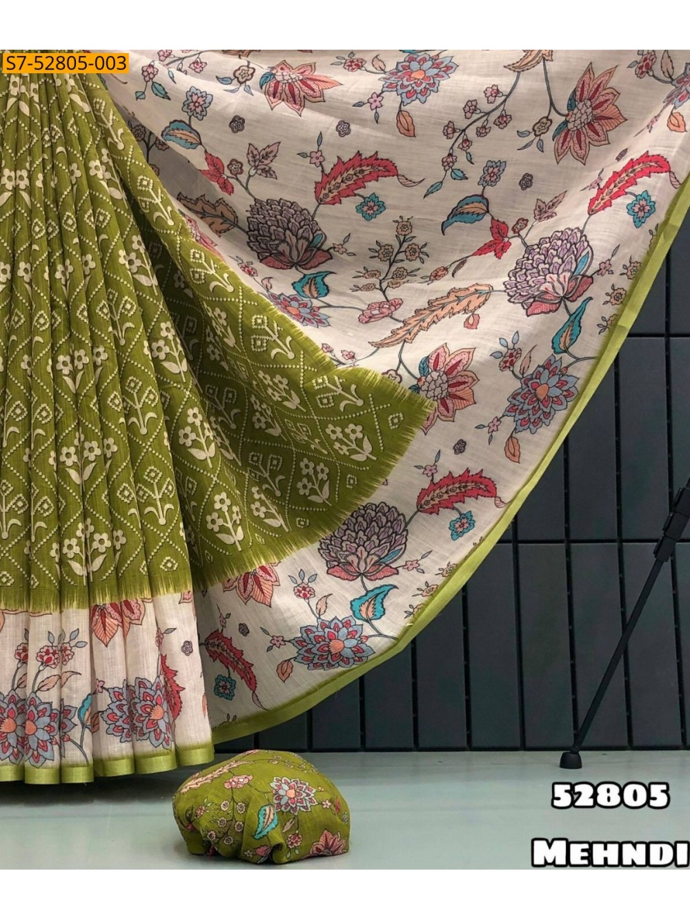 - Floral Print & zari patti border