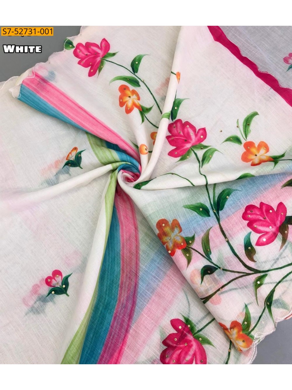- Sequince work and embroidery work scalloped cutwork border
