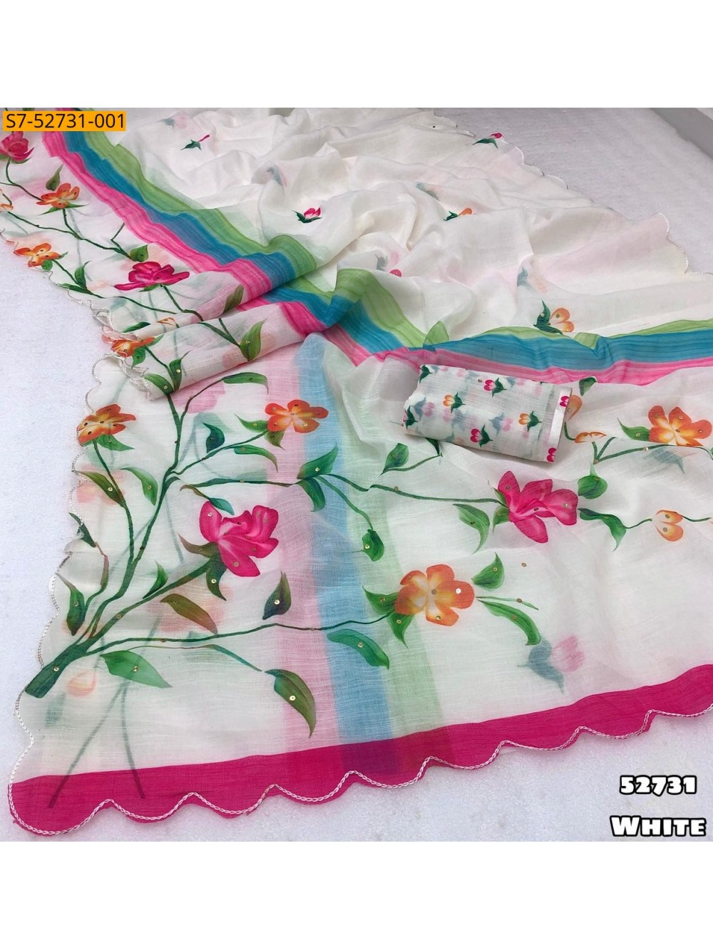 - Fancy Soft linen printed saree