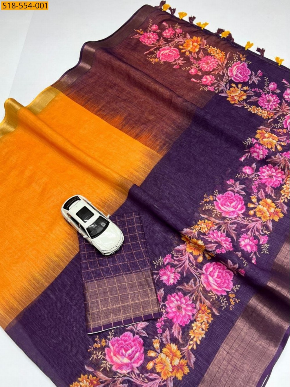 • Fancy Soft Linen Printed Sarees
