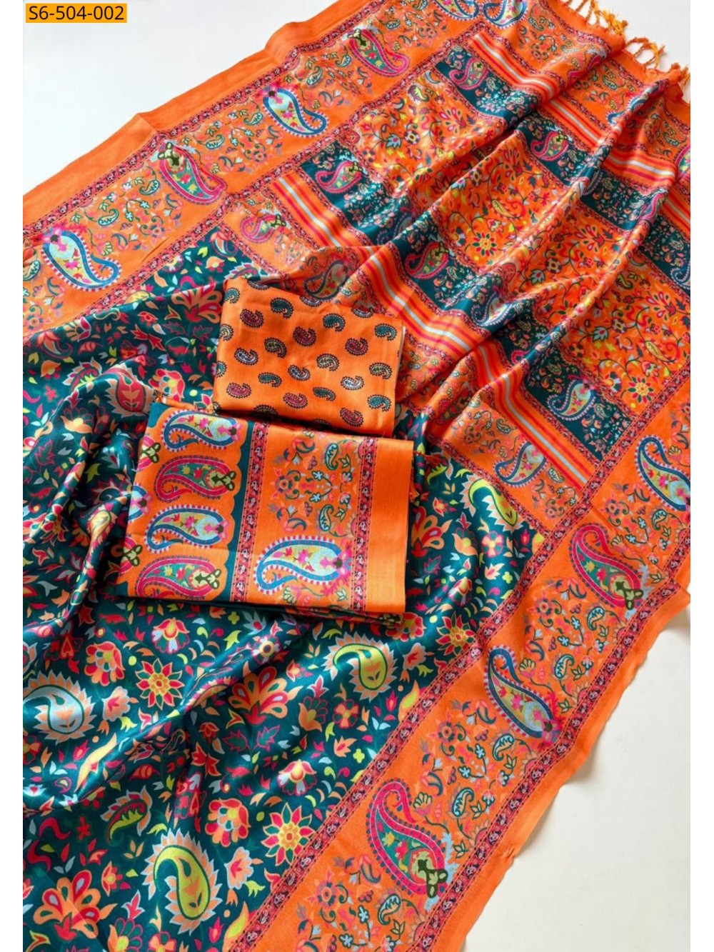 Peacock Blue Fancy Soft Pashmina Silk saree