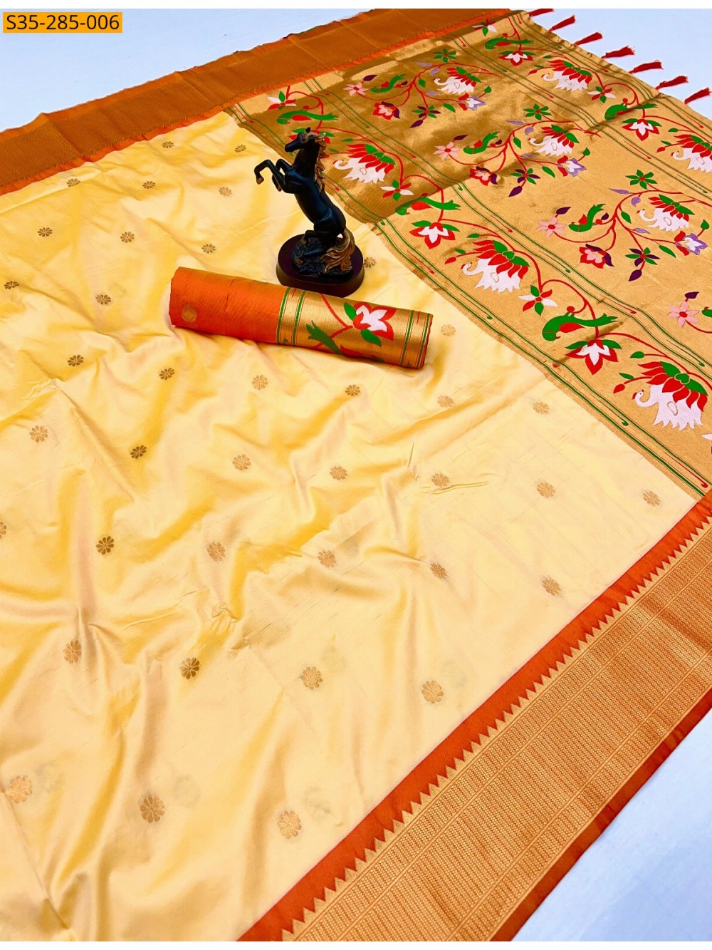 - Heavy Mina zari weaving rajhans Pallu with tassels