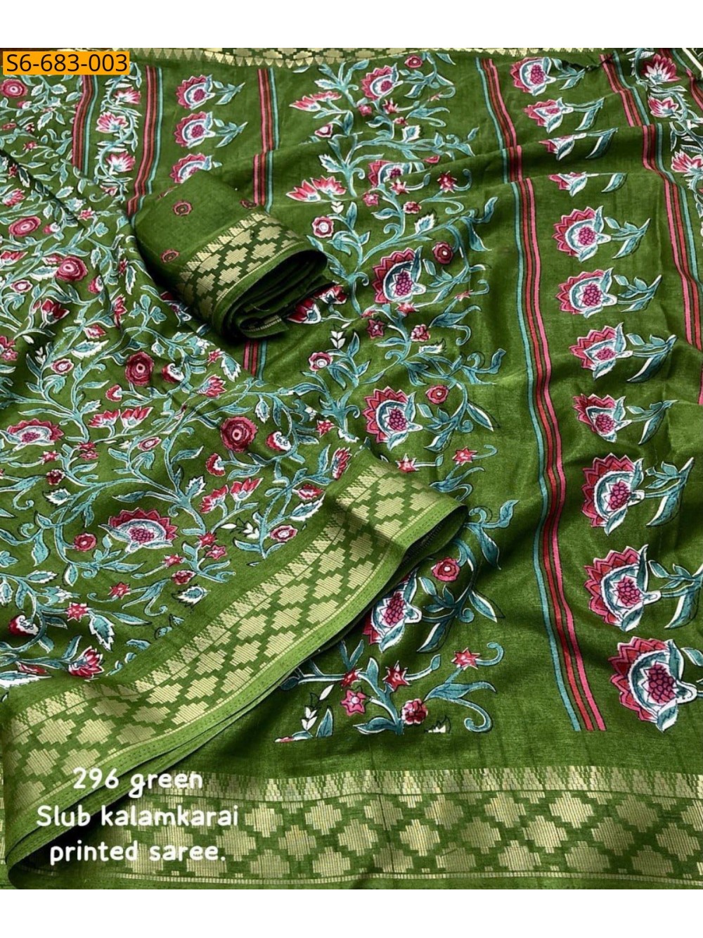 • Kalamkari printed design all over the saree