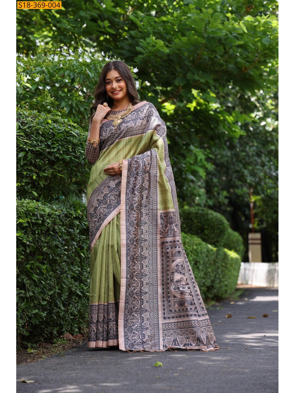 - Madhubani printed design all over the saree