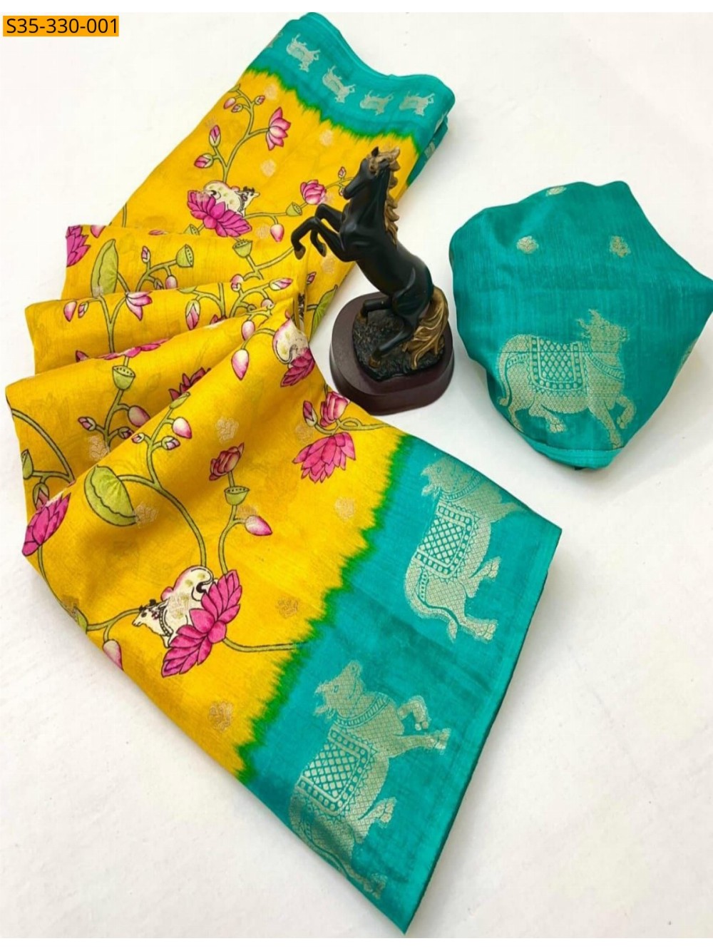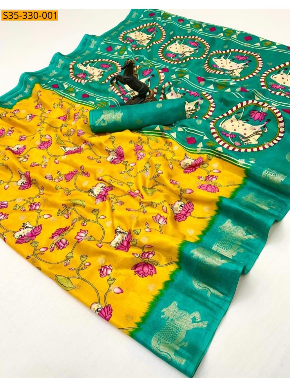 - With Kalamkari Cow Border