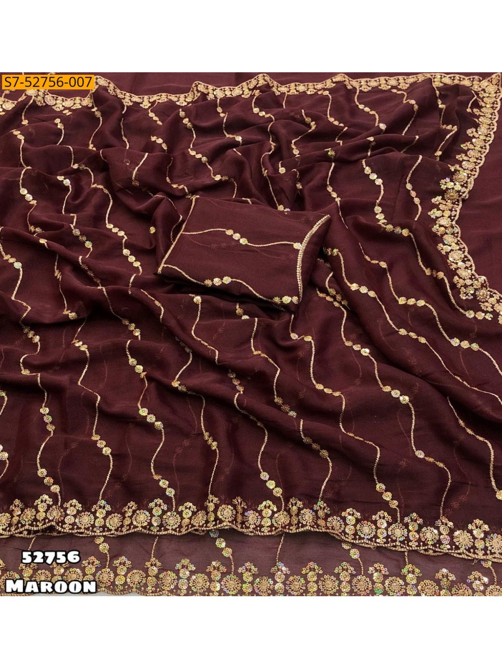 Maroon Fancy Star georgette Sarees