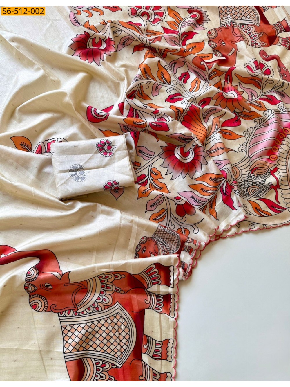 • Kalamkaari digital printed Design allover the saree