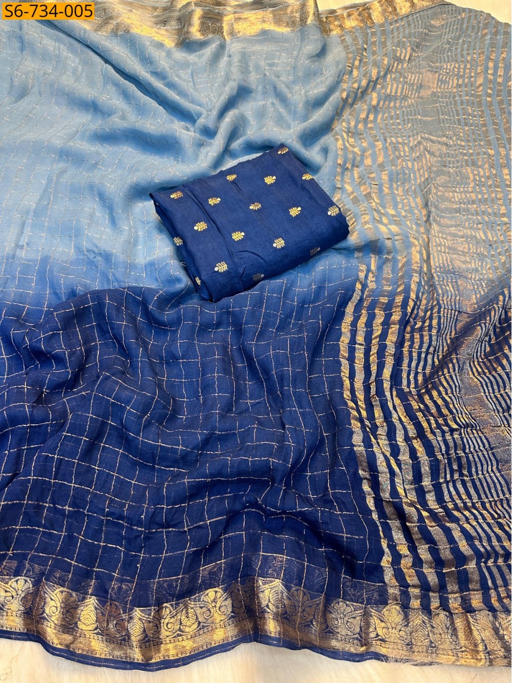 - Zai Weaving Checks Design allover the saree