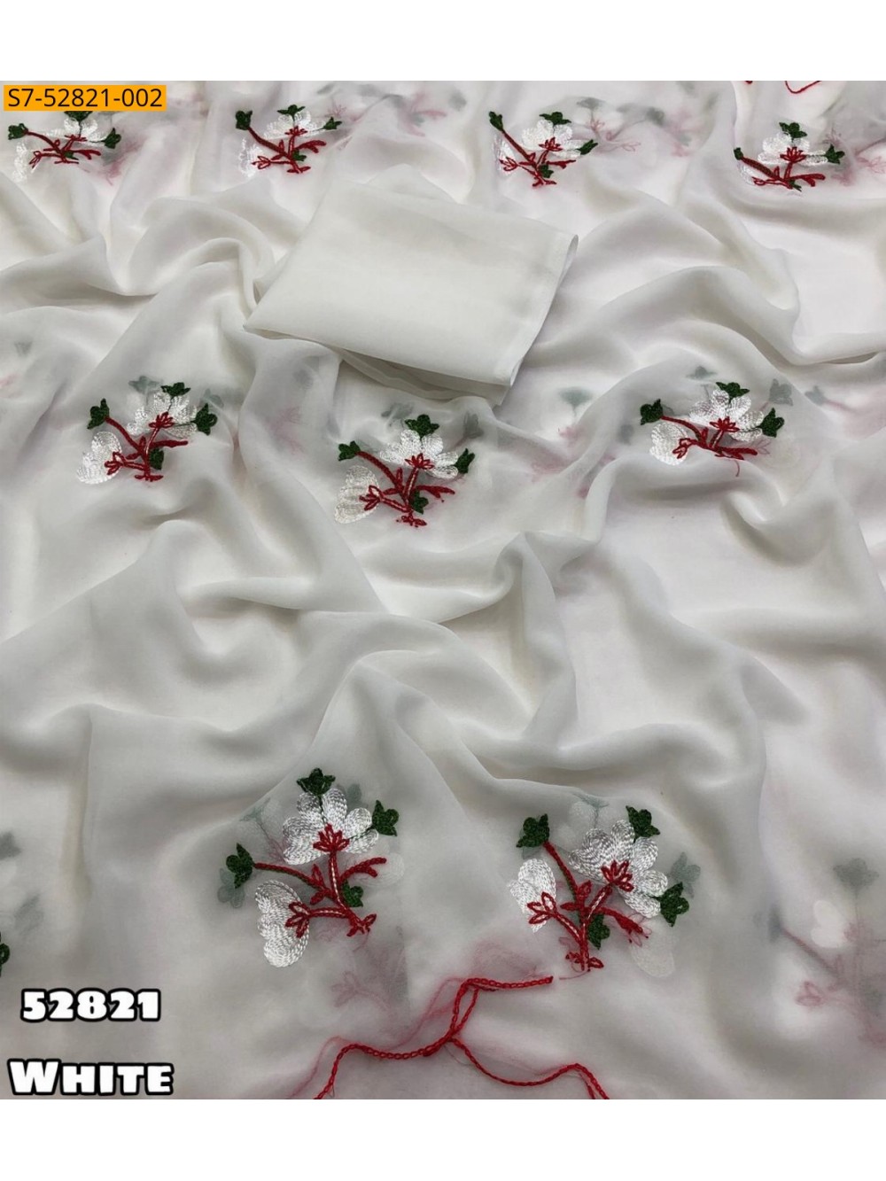 White Faux georgette embroidery saree