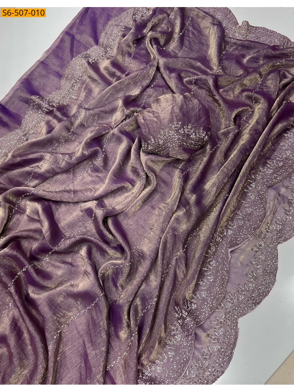 Lavender Fendy Chiffon Jarkhan Diamond Work Saree