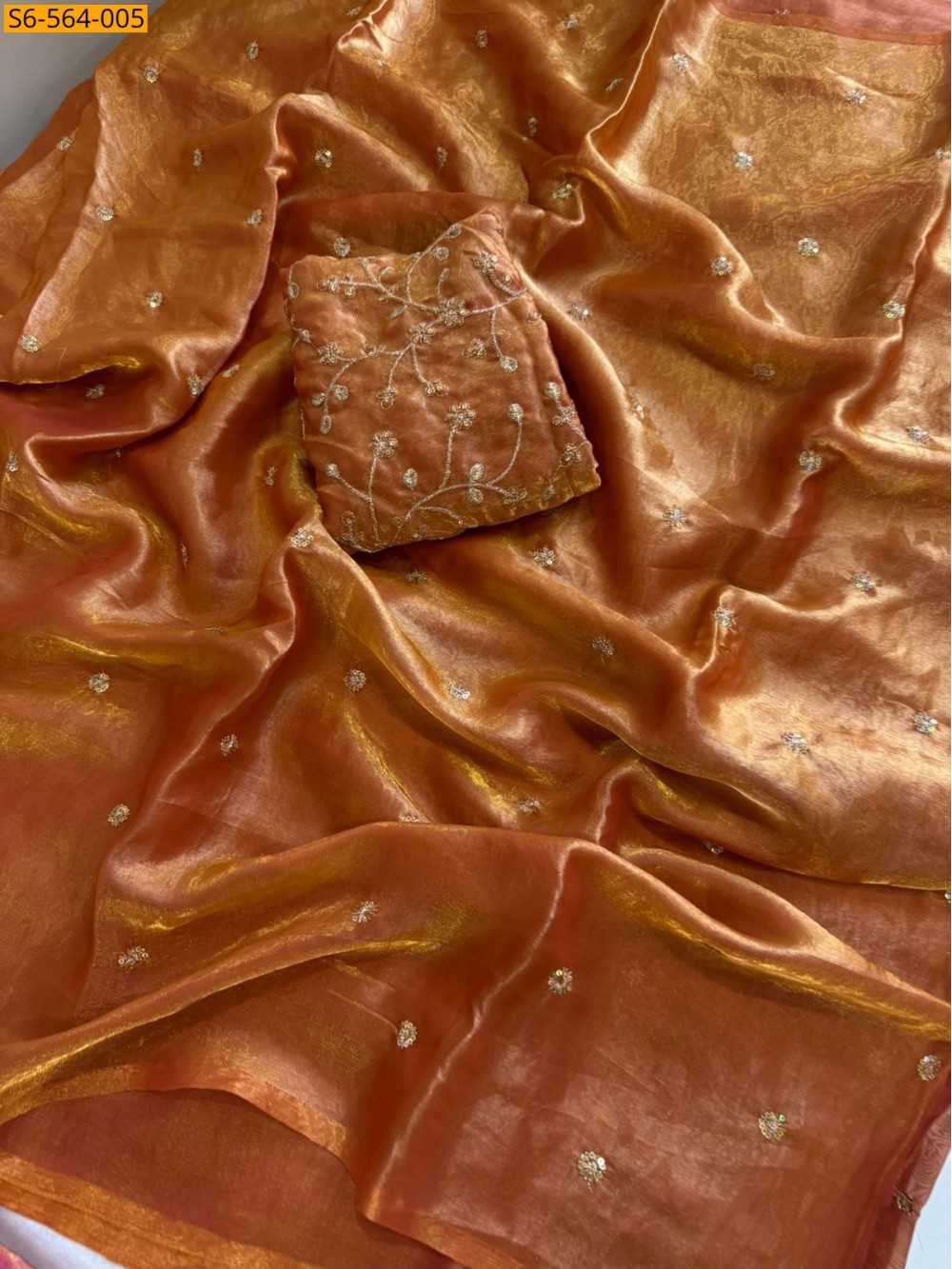 Orange Fendy Satin Saree