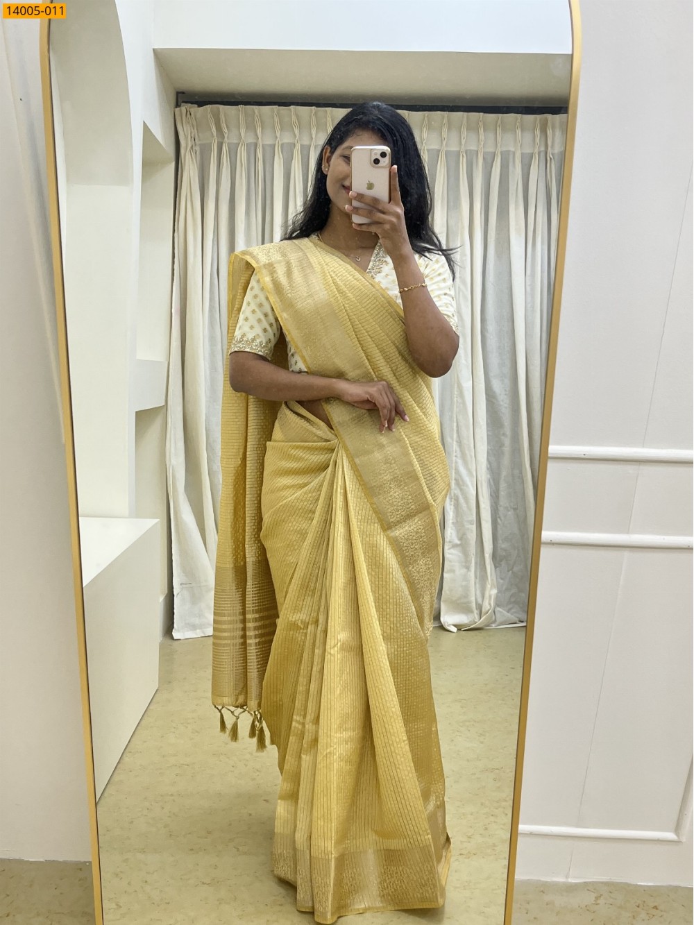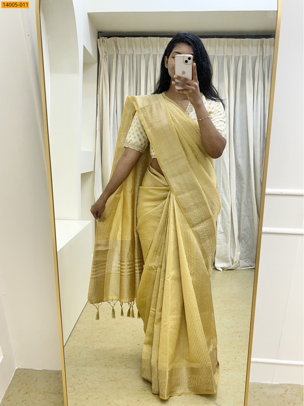 - Checked zari design all over the body