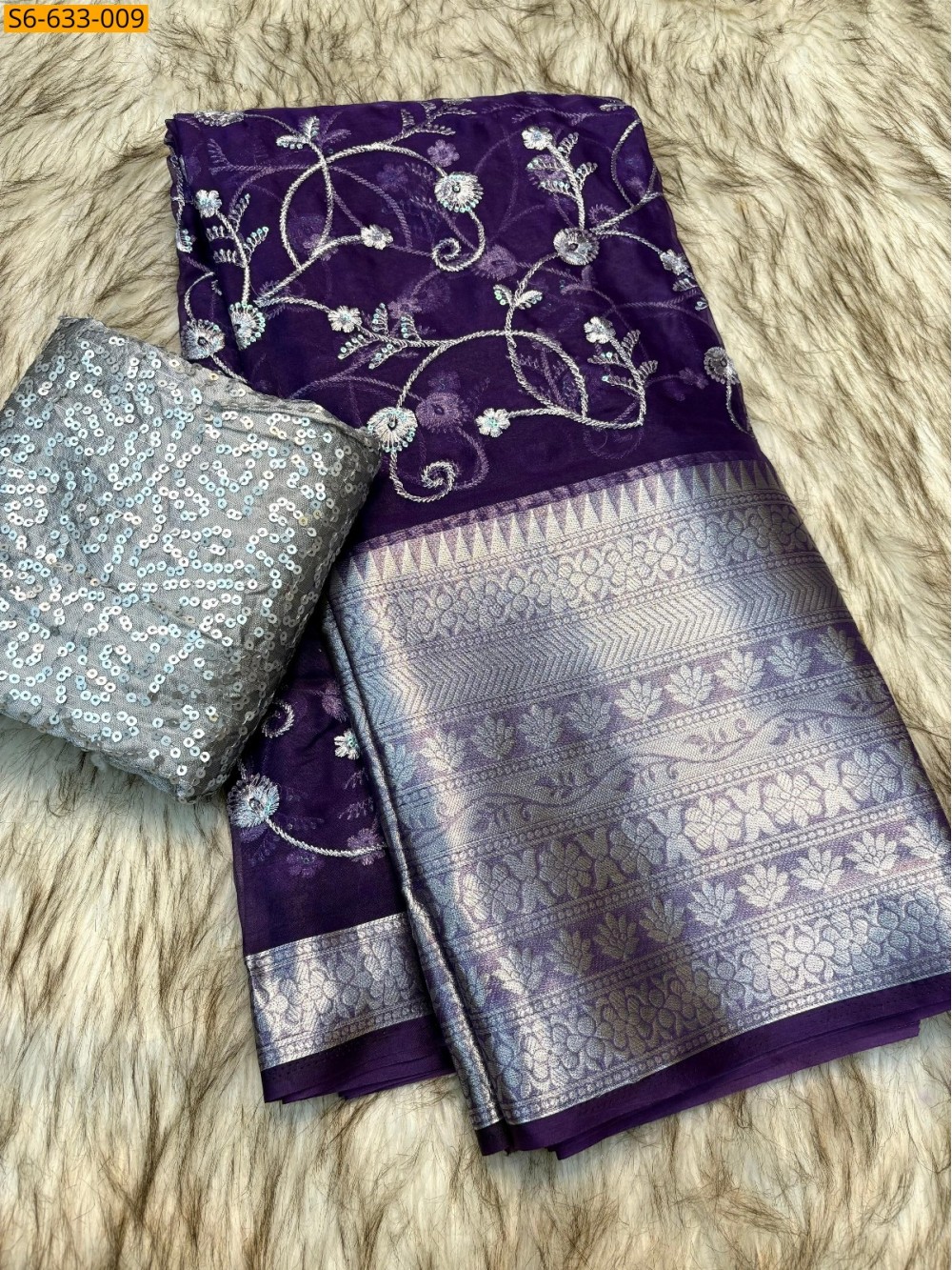 • Sequins and embroidery work all over the saree