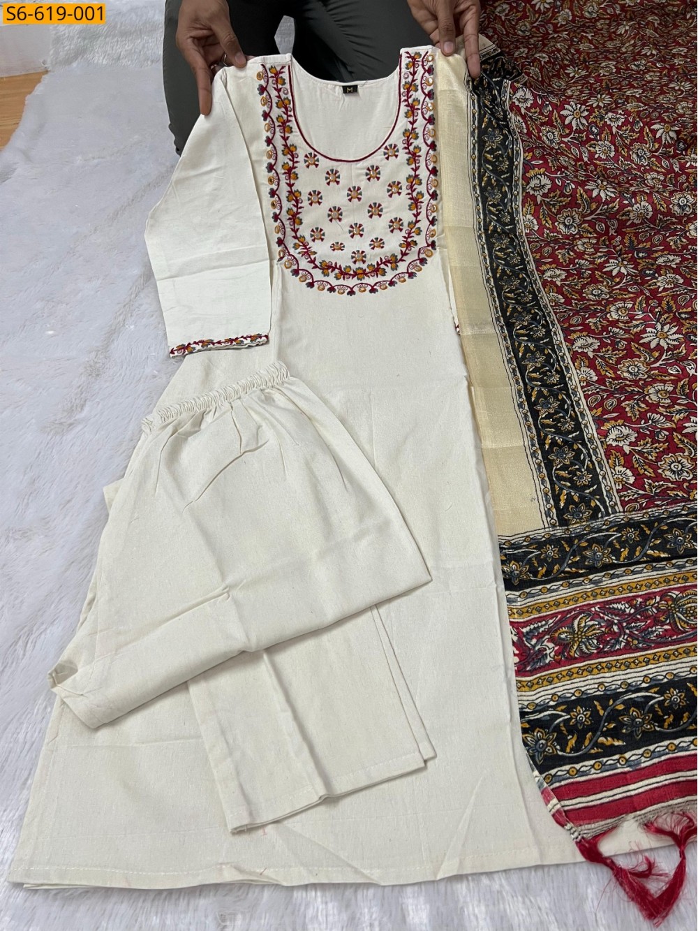 - Khadi Cotton kurti Pant Dupatta Set