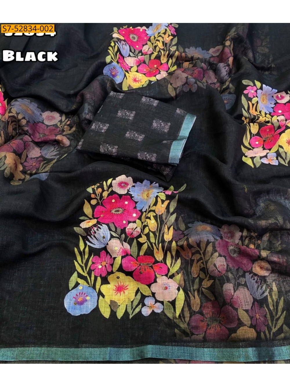 Black Linen Printed sarees
