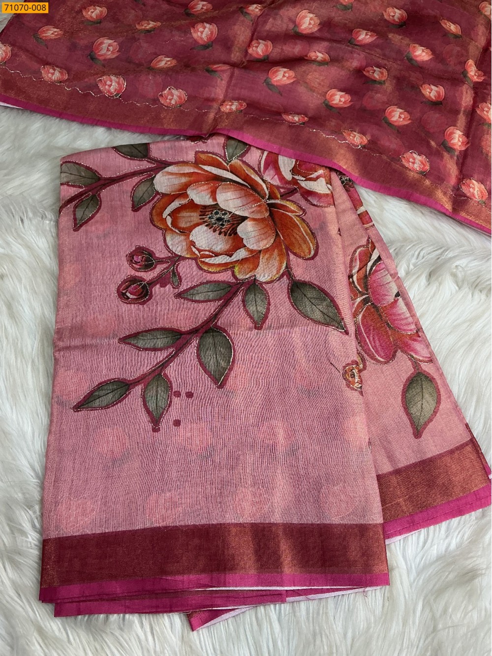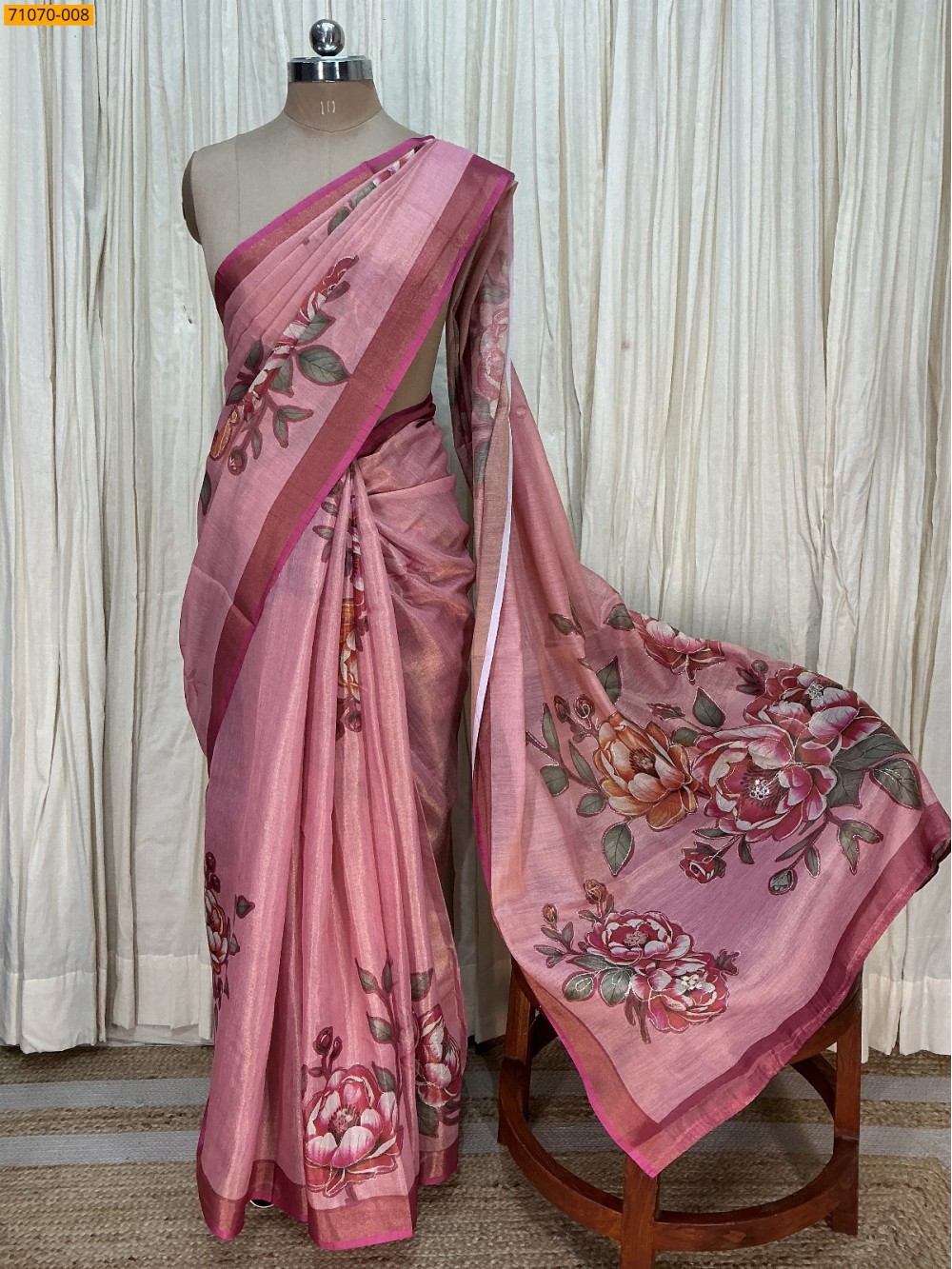 Pink Linen Tissue silk digital printed sarees