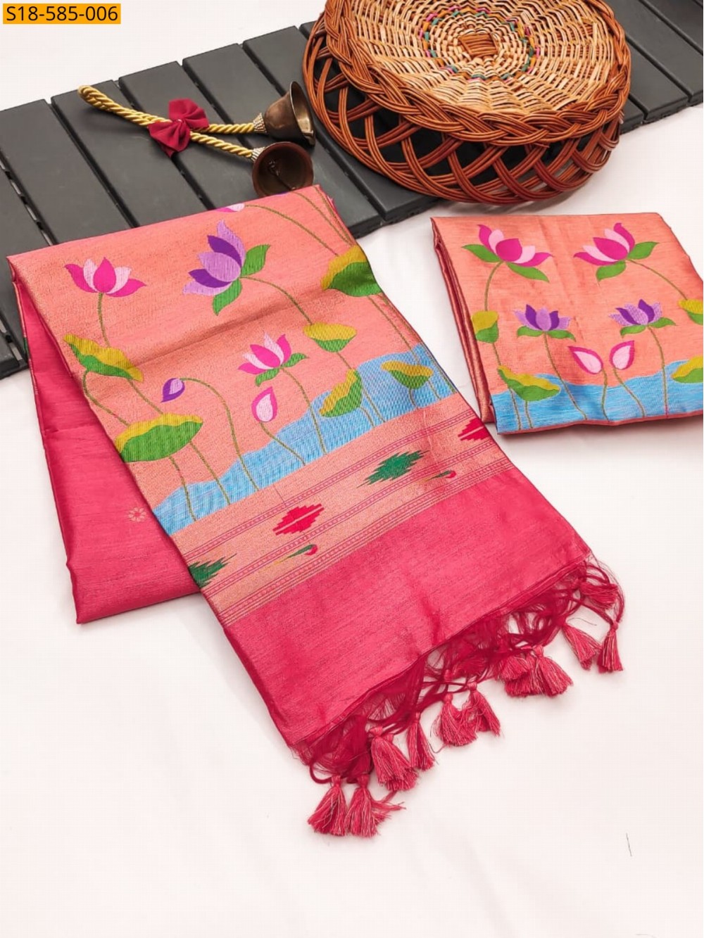 - Lotus paithani khadi raw silk saree