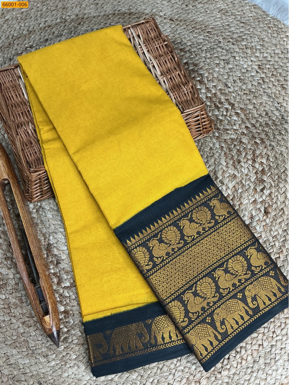 Lemon Yellow Mayuri Plain Sugudi Cotton Saree